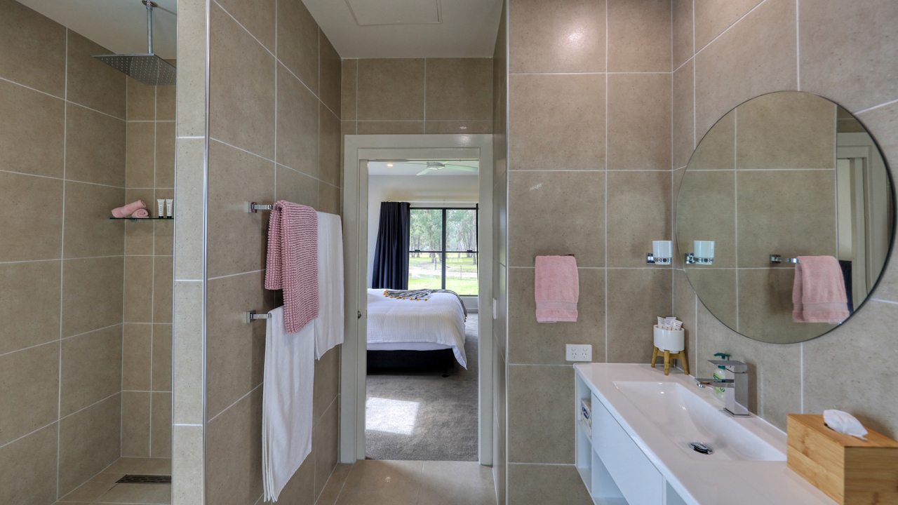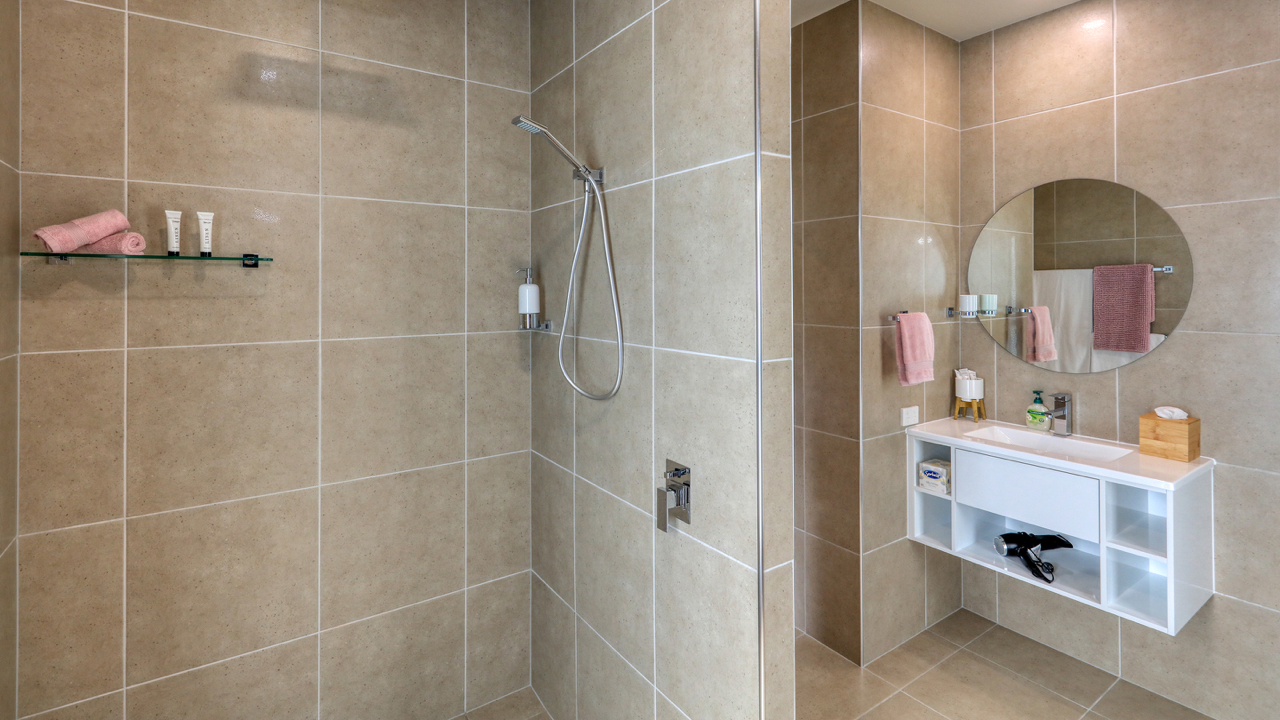 - Wheelchair friendly Ensuite featuring: Shower with shower chair, Toilet with grab rails and vanity with Hairdryer and free toiletries